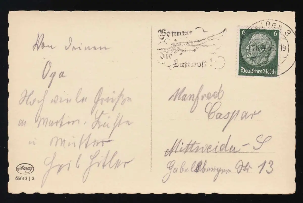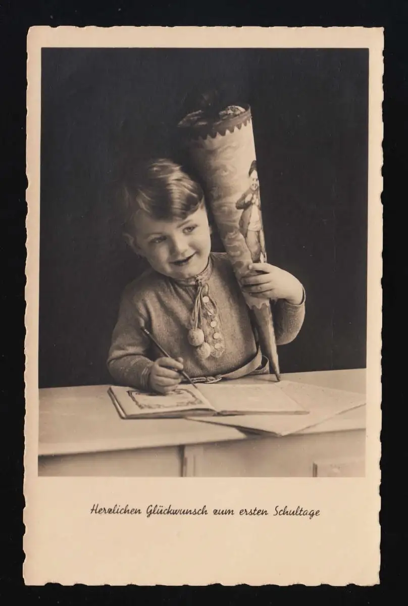 Amag Photo AK 65613/ 3 Garçon écrit souriant et garde le sac scolaire, Meissen 26.4.38