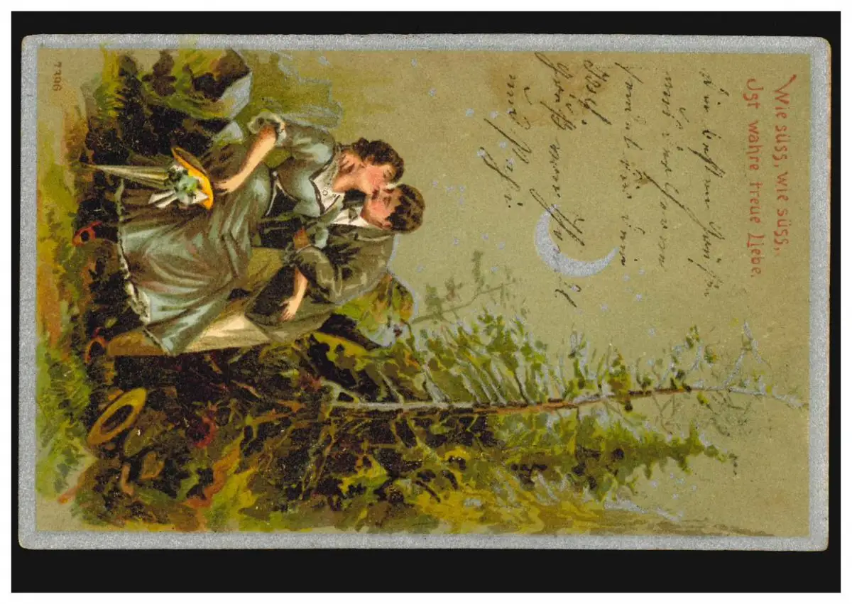Amour-AK Couple d'amour au clair de lune: Le baiser, INTRODUC BAHNHOF 14.5.1900