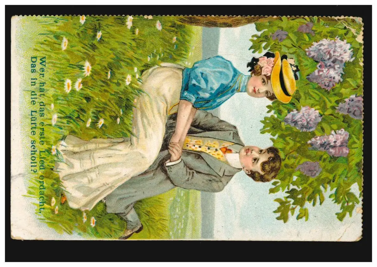 Amour-AK Couple d'amour dans la prairie, poème: Première chanson, Münster 1910
