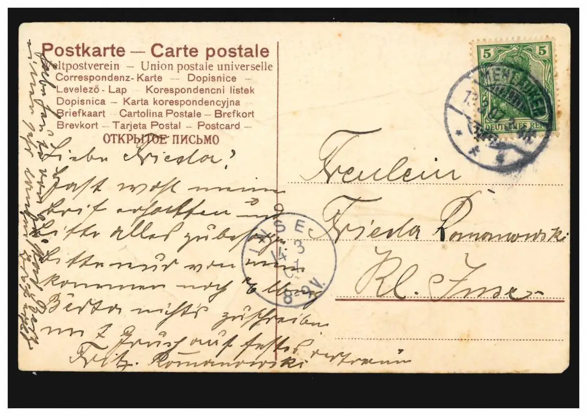 Tampon d'arrivée INSE 14.3.1907 Vérification: original Référence produit: 00000000038949>Note: Cet article n'est disponible qu'une seule fois. Vous recevrez exactement l'article représenté.