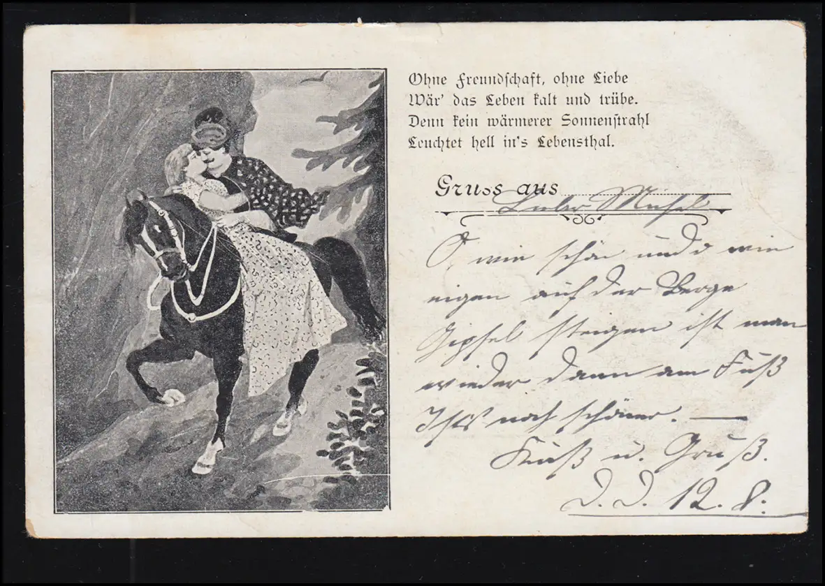 Amour-AK couple d'amour sur un cheval - Le baiser, marqué