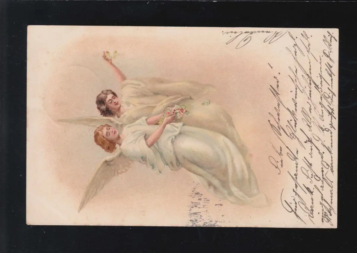 Anges en robe blanche en flottant des fleurs, des temples 21.10.2001