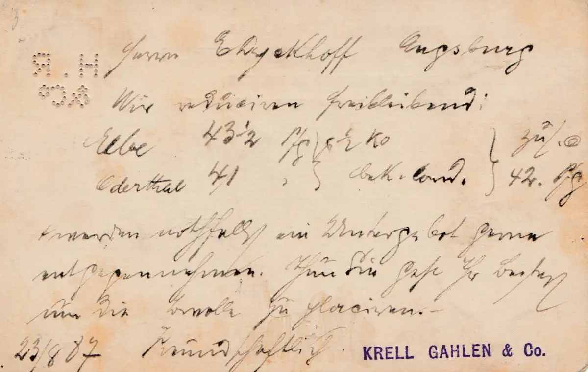 Angleterre: 1887: Tout à fait - Liverpool vers Augsburg - Perfin