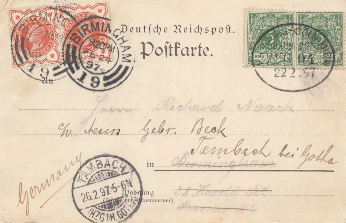 Angleterre: 1897: Birmingham après Tambach : Carte de vue Hambourg Rathsweinkeller