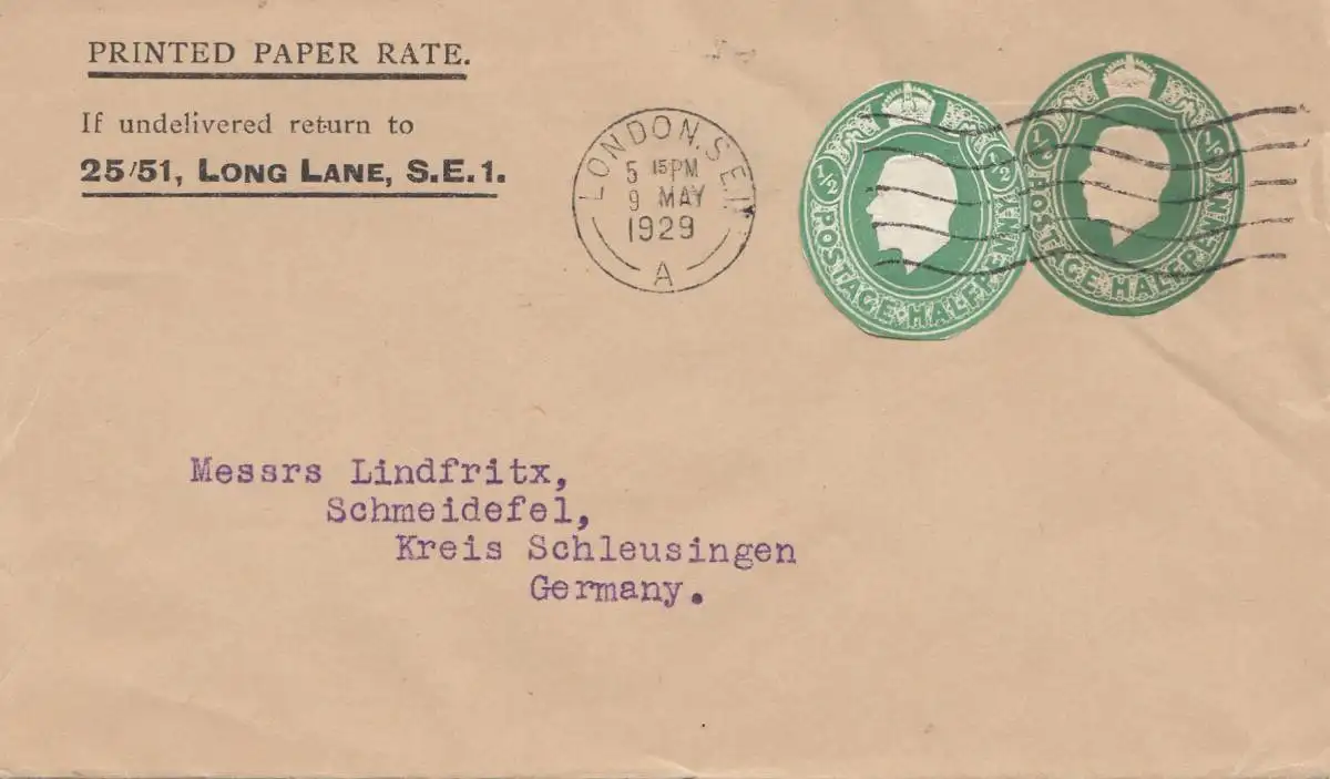 Angleterre: 1929: Londres vers Schmeidefel