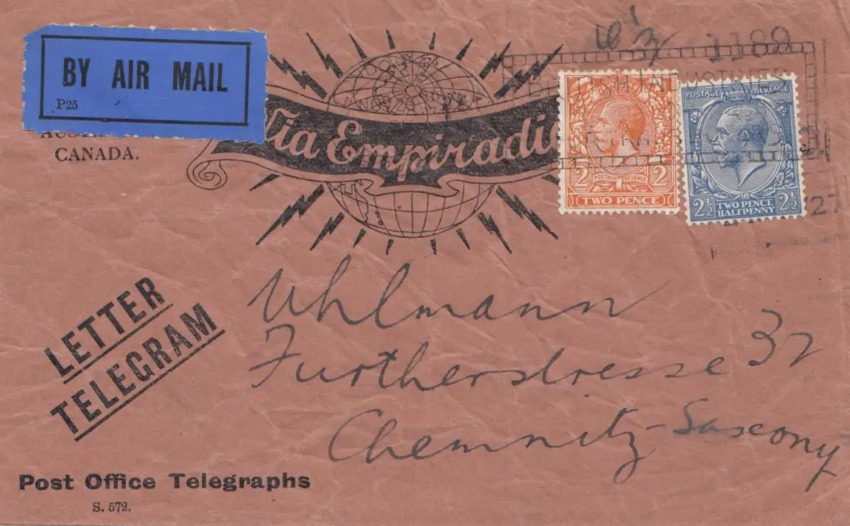 Angleterre: Air Mail - Letter Telegram apres Chemnitz