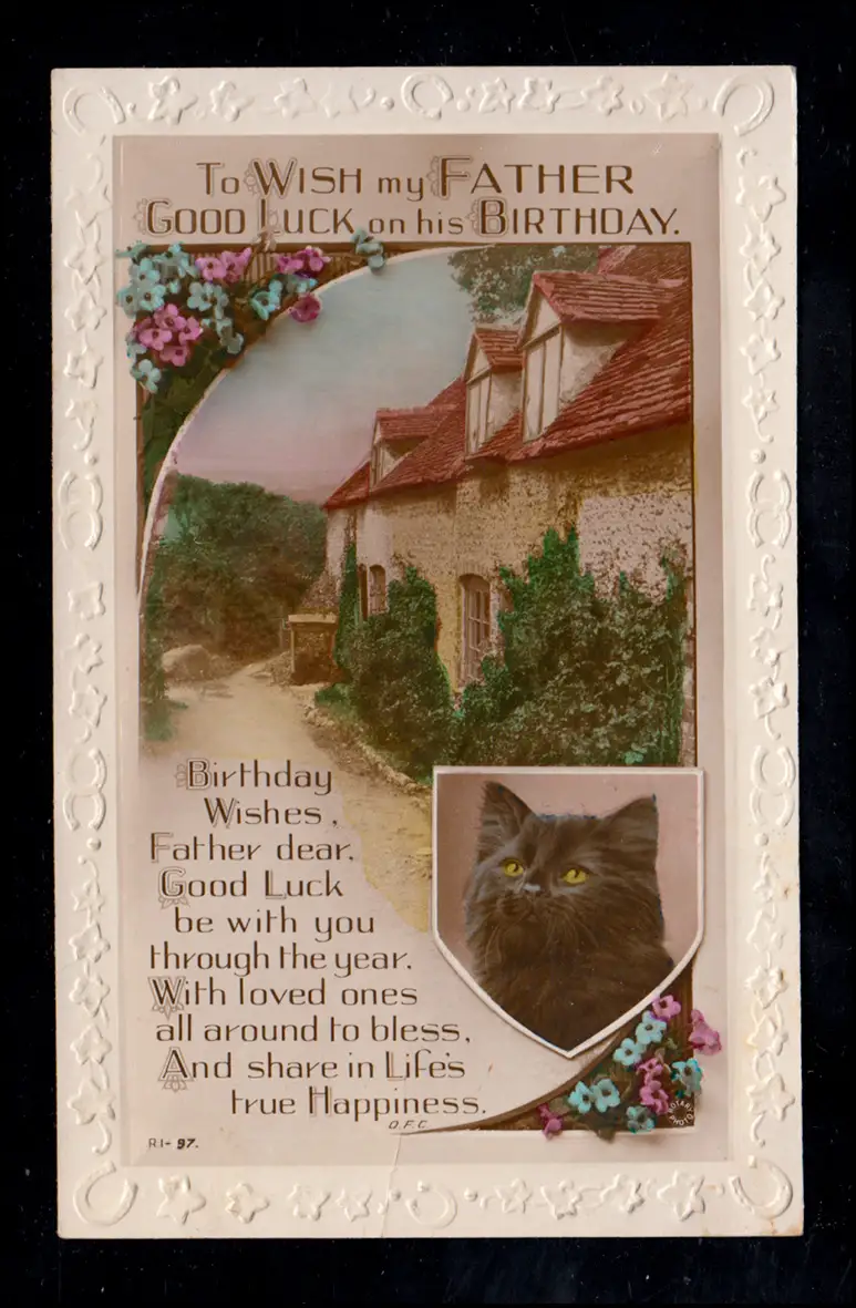 Angleterre Animaux-AK Anniversaire: Vue de la maison avec chat, marqué