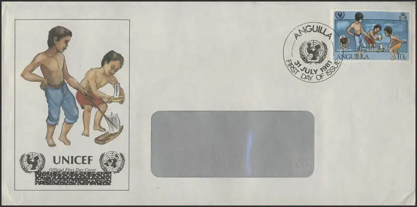 Anguilla: en jouant sur la plage & bateaux & UNICEF, 1 marque sur le FDC de bijoux