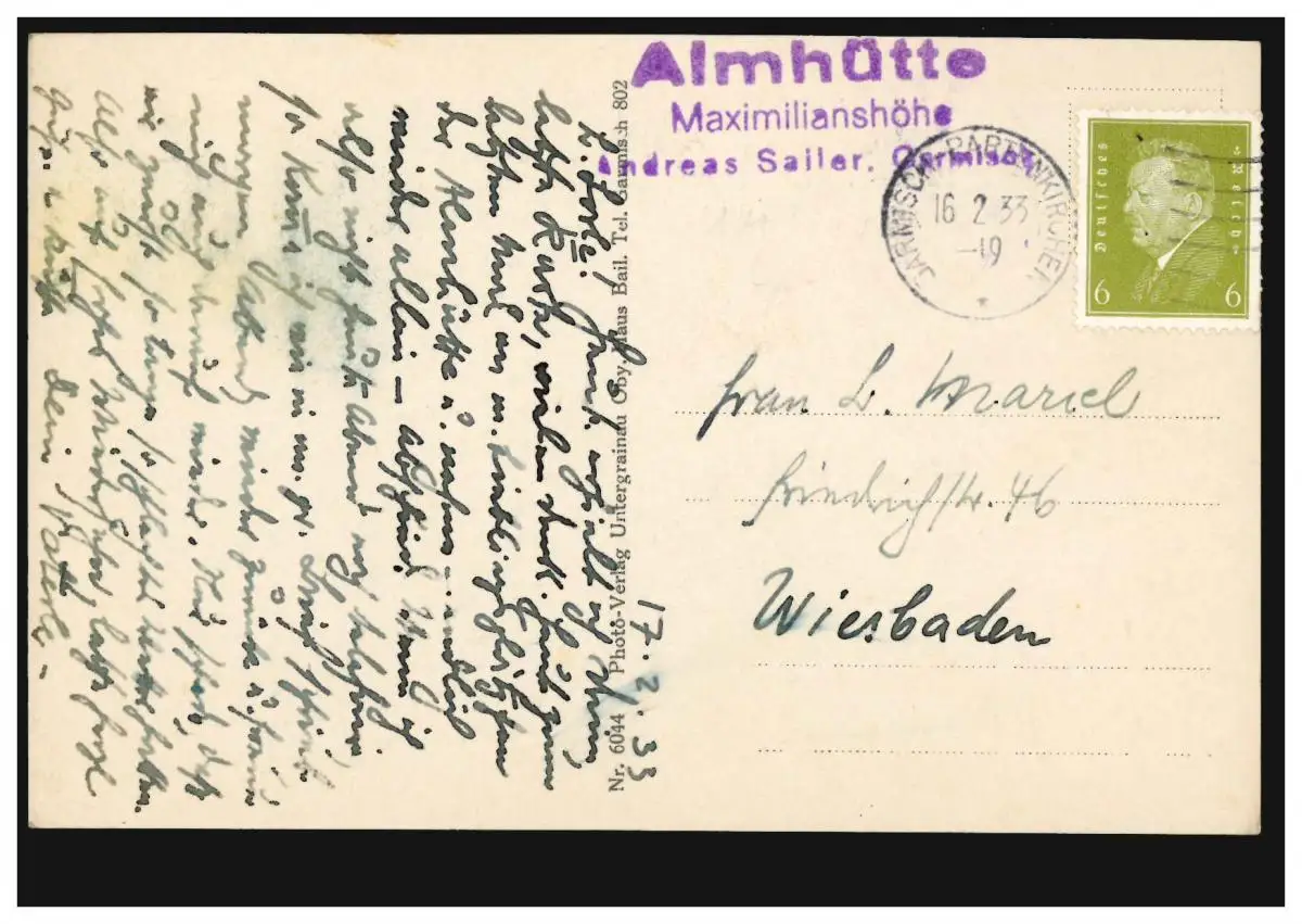 Tampon d'expéditeur Almhütte Maximilianshöhe Andreas Sailer Garmisch Test: original Référence produit: 00000000041564
