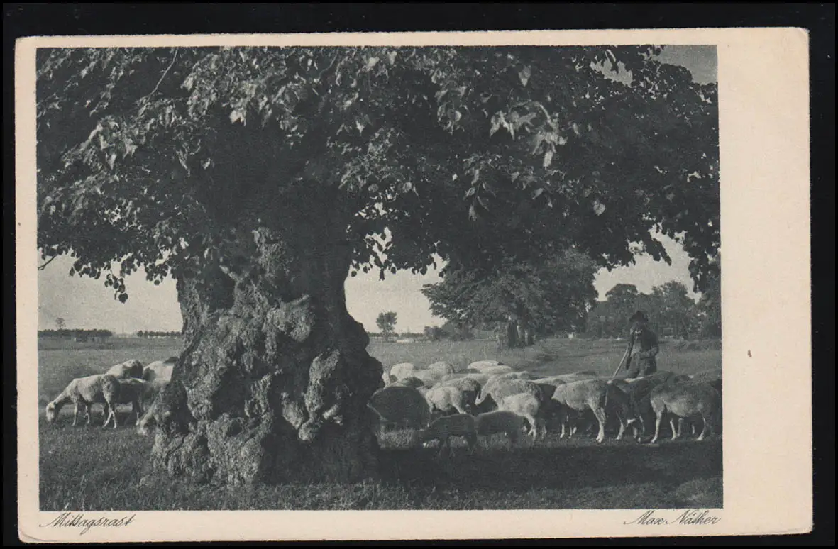 Animaux-AK Midi: berger avec troupeau à l'ombre d'un chêne, GMÜND 25.7.1932