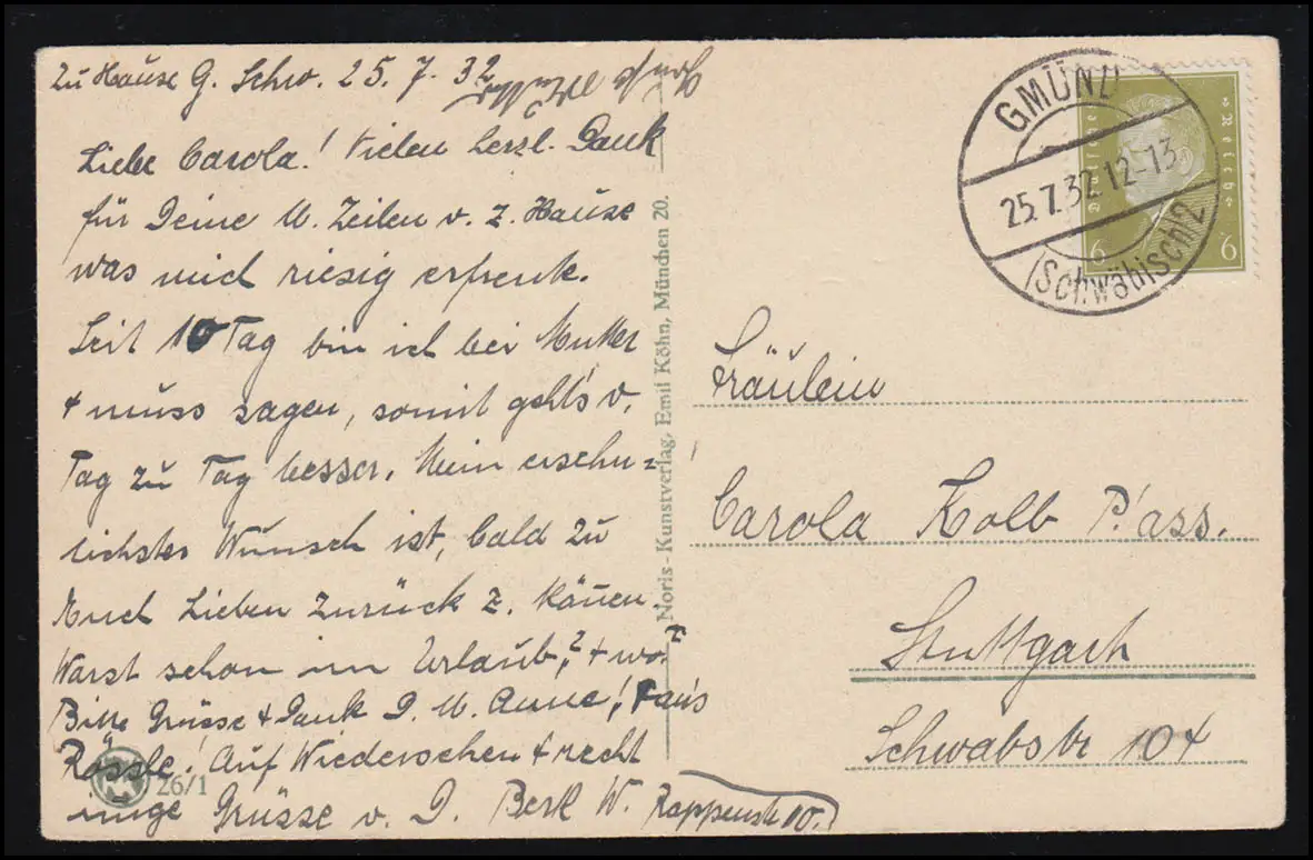 Tampon quotidien GMÜND (Schwäbbisch) 2 - 25.7.32 Vérification: original Référence produit: 00000000010881