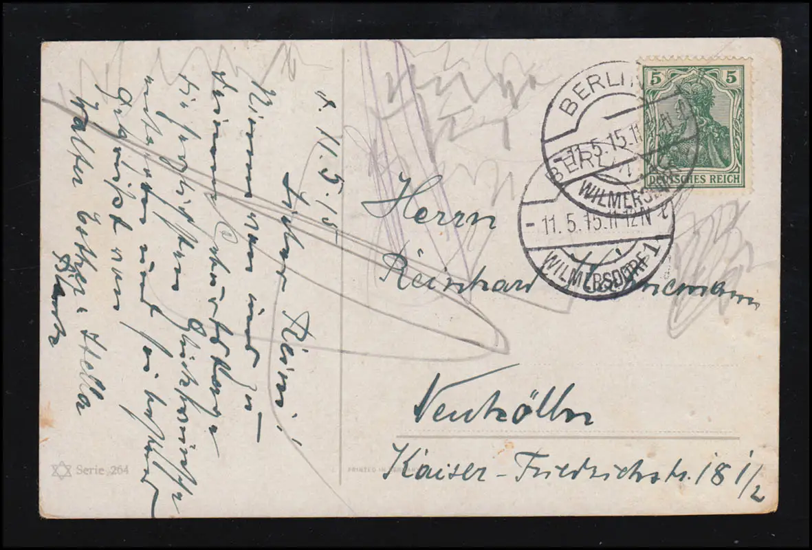 Animaux-AK moutons et agneaux dans la prairie, BERLIN-WILMERSDORF 11.5.1915