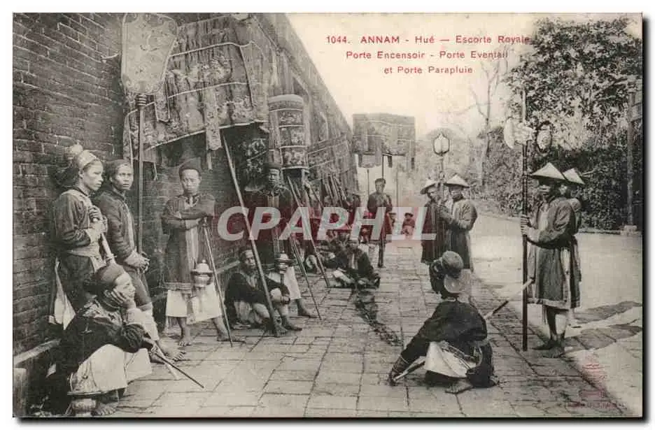 Annam Hue Cartes postales Escorte royale Porte Encensoir Porte eventail et porte parapluie Indochine Indochina T