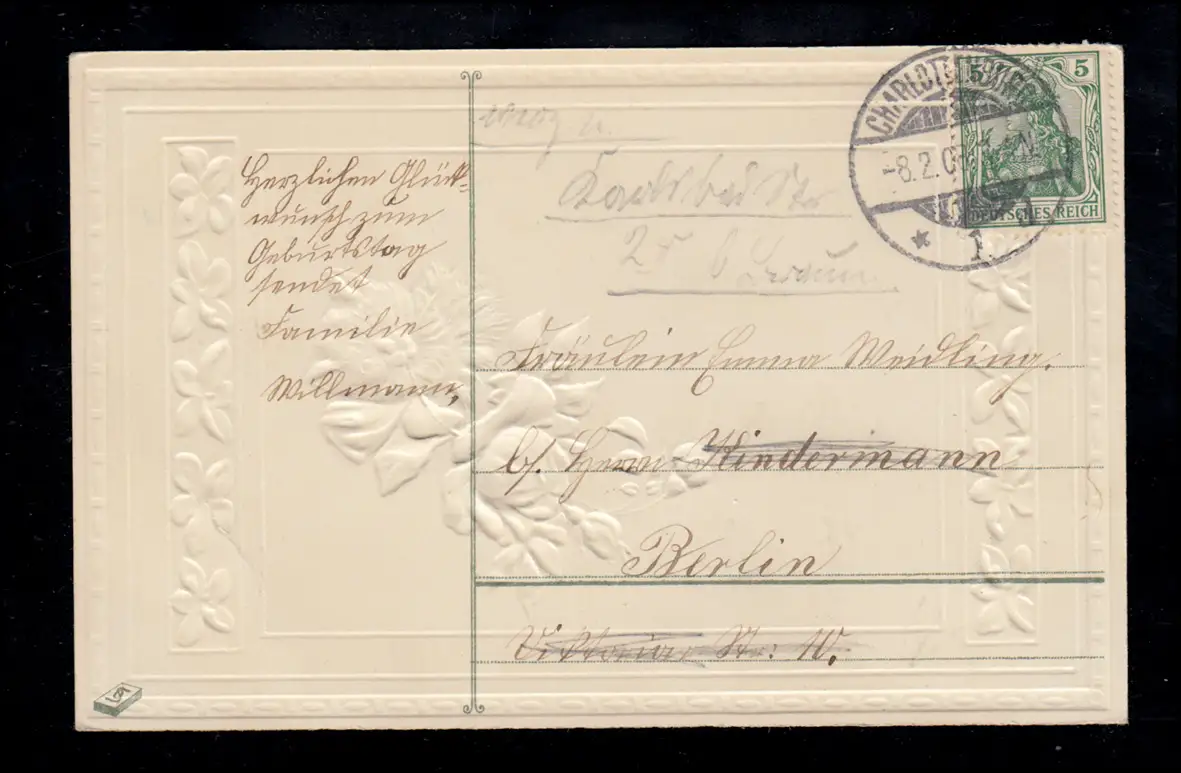 Anniversaire d'animaux-AK: Chat avec blanc rose, CHARLOTENBURG 8.2.1908