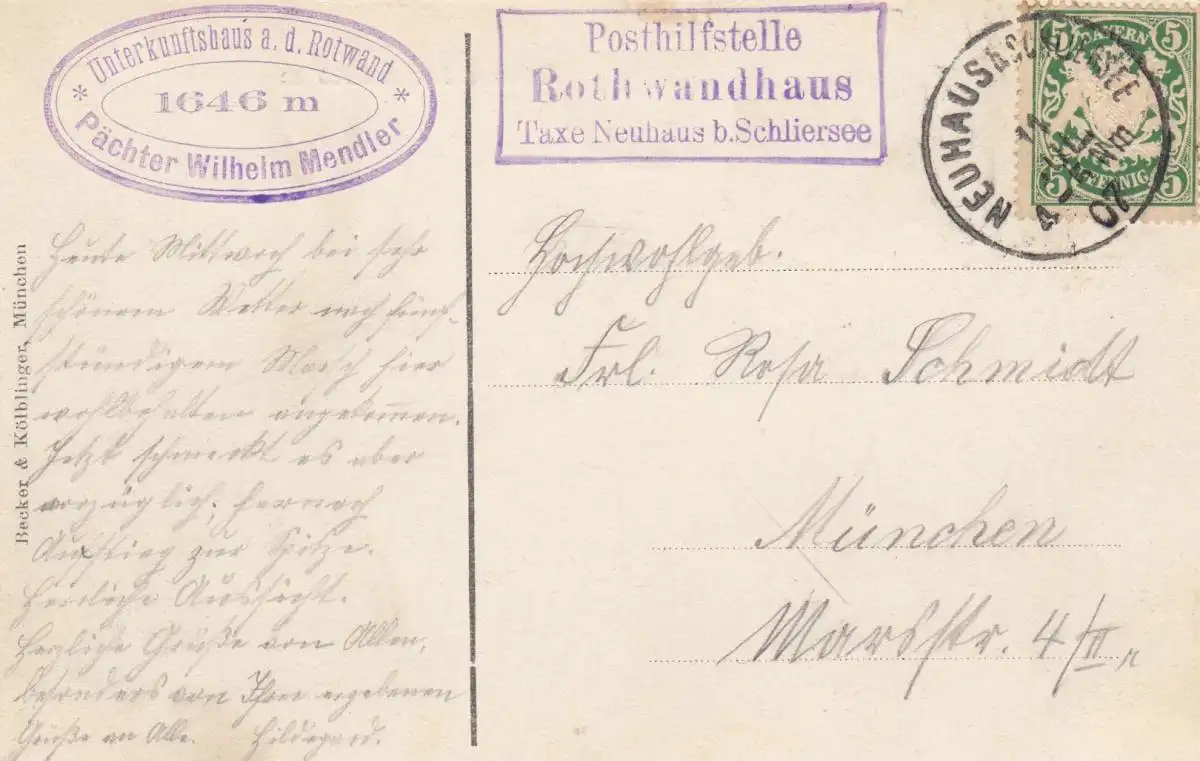 Carte postale 1907 Rothwandhaus/Neuhaus /Flärsee vers Munich