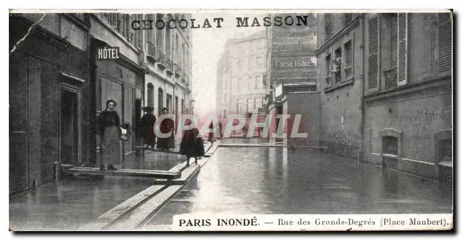 Cartes postales Chocolat Masson Paris Inonde Rue des Grands Degres
