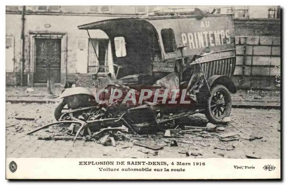 Cartes postales Explosion de Saint Denis 4 mars 1916 Voiture automobile sur la route (automobile Au Printemps )