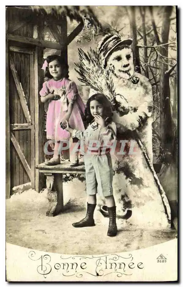 Cartes postales Fantaisie Bonhomme de neige Enfants