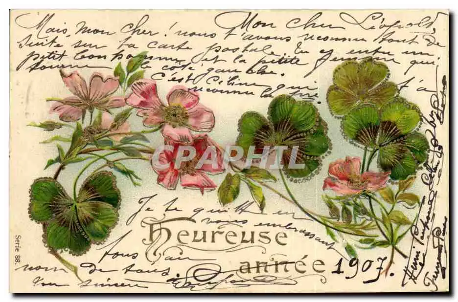 Cartes postales Fantaisie Fleurs Trefles