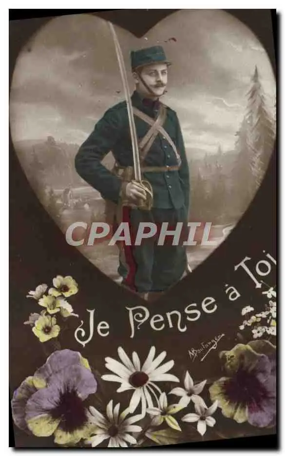 Cartes postales Fantaisie Homme Soldat Militaria Coeur
