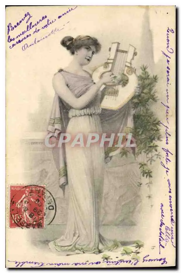 Cartes postales Fantaisie Illustrateur Femme Lyre