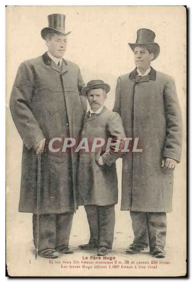 Cartes postales Foklore Geant Freres Hugo Adriens Nain