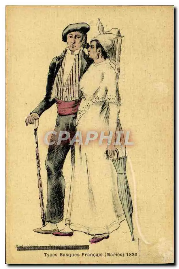 Cartes postales Folklore Types basques francais 1830 Maries Mariage (carte toilee)