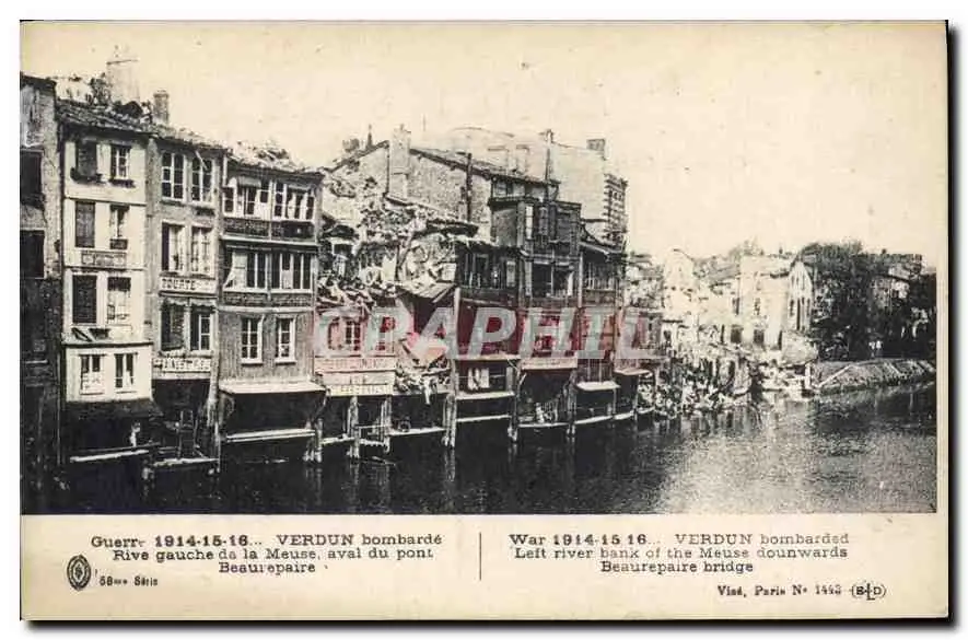Cartes postales Guerre 1914 15 16 Verdun Bombarde Rive Gauche de la Meuse aval du Pont Beaurepaire