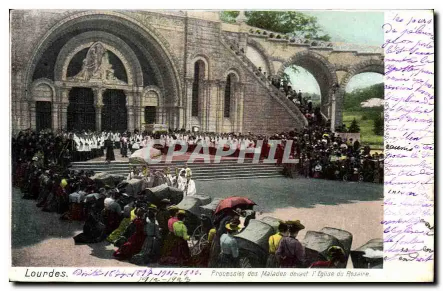 Cartes postales Lourdes Procession des Malades devant l'Eglise du Rosaire