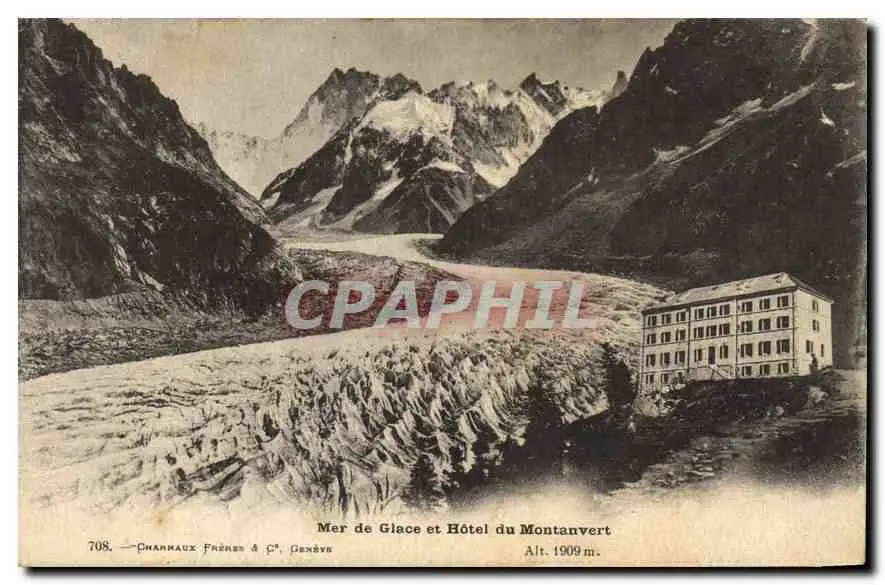 Cartes postales Mer de Glace et Hotel du Montanvert