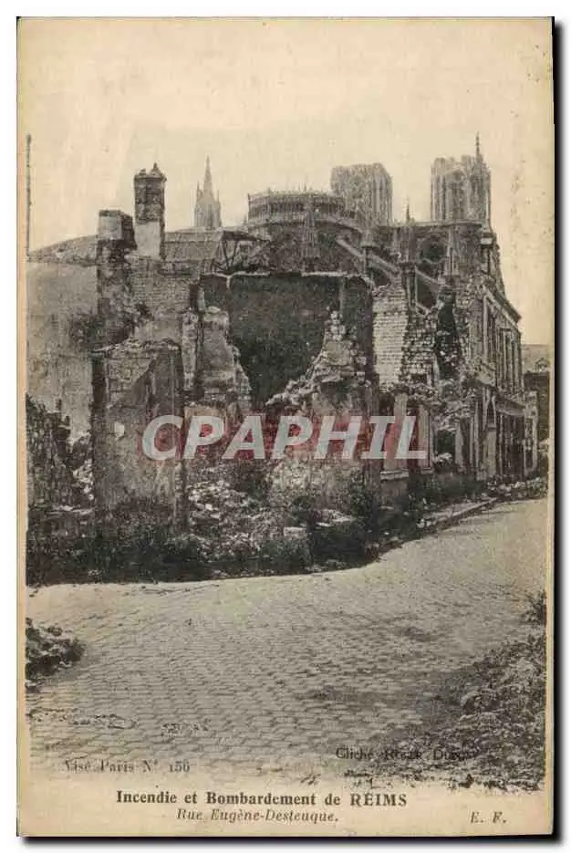 Cartes postales Militaria Incendie et bombardement de Reims Rue Eugene Desteuque