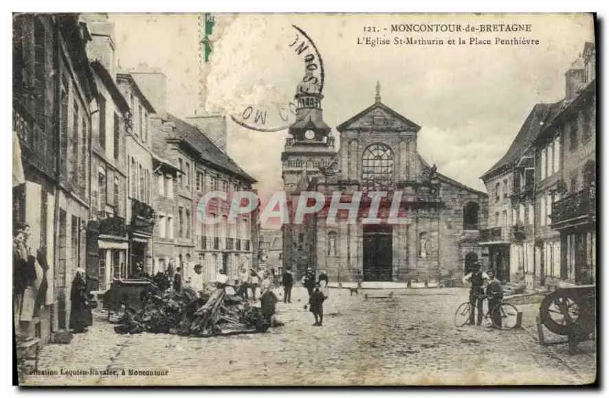 Cartes postales Moncontour de Bretagne L'Eglise St Mathurin et la Place Penthieve