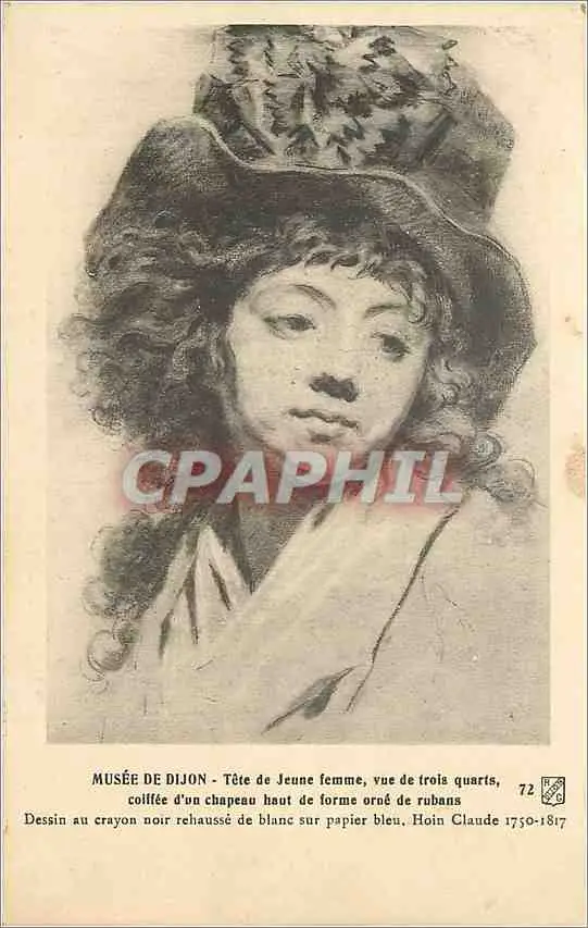 Cartes postales Musee de Dijon Tete de Jeune femme vue de trois quarts coiffee d'un chapeau haut de forme orne d
