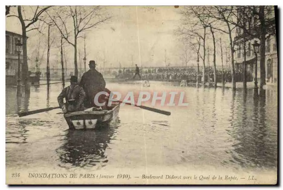 Cartes postales Paris Inondations Boulevard Diderot vers le quai de la Rapee