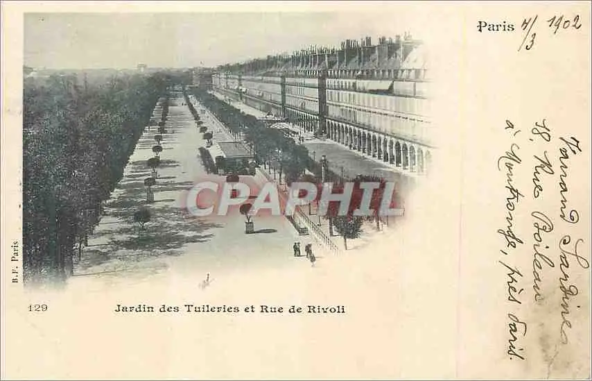 Cartes postales Paris Jardin des Tuileries et Rue de Rivoli (carte 1900)
