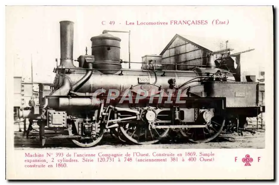 Cartes postales Train Locomotive Machine 393 de l'ancienne compagnie de l'Ouest