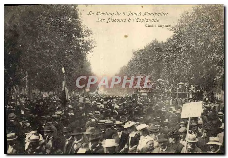 Cartes postales Vin Vendanges Le meeting du 9 juin a Montpellier Les discours a l&#39esplanade TOP