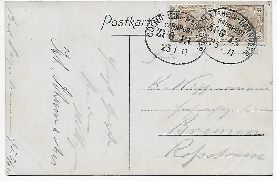 Carte de vue Bad Oeynhausen, Bahnpost Cpln/Rhein vers Hanovre, 1911