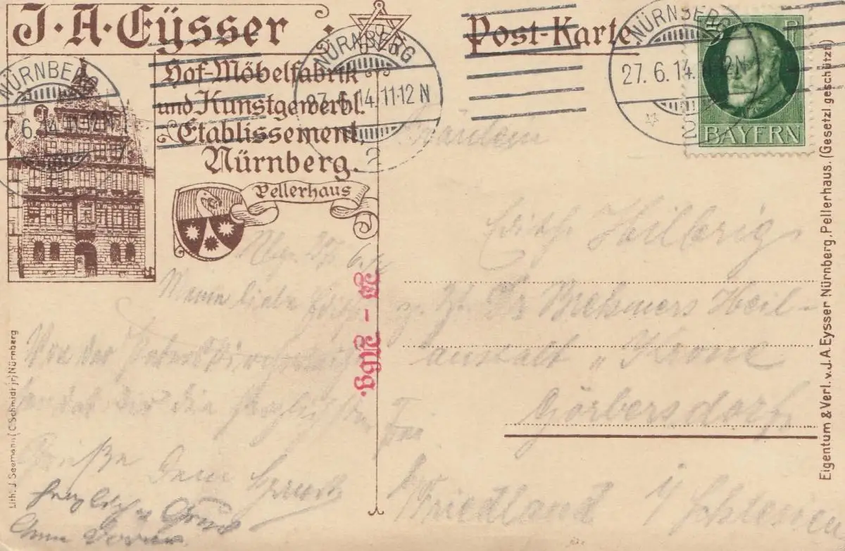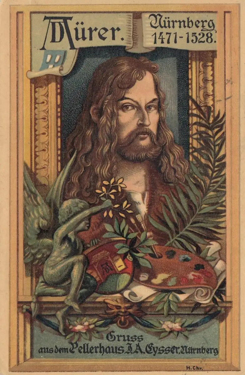 Carte de vue Dürer, Memeubelfabrik und Kunstverbungen Nuremberg 1914