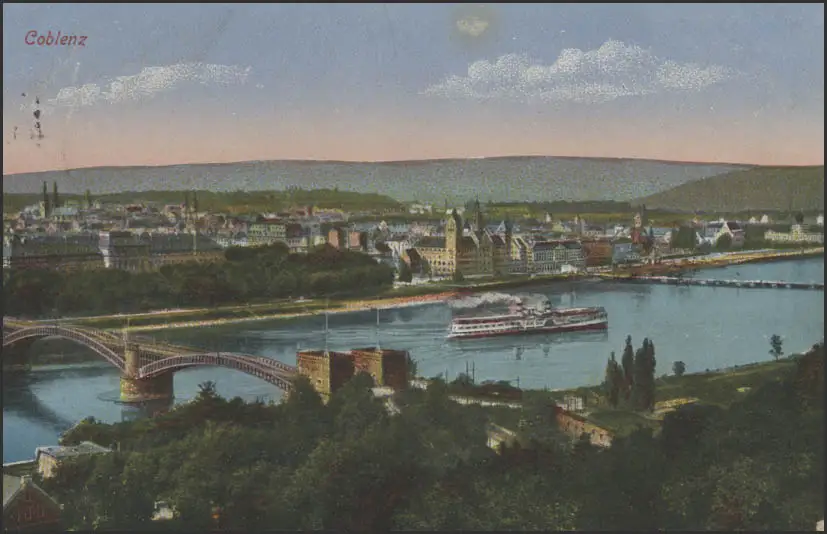 Carte de vue Feldpost Coblenz: Panorama, Coblence 10.6.1915 vers Birth