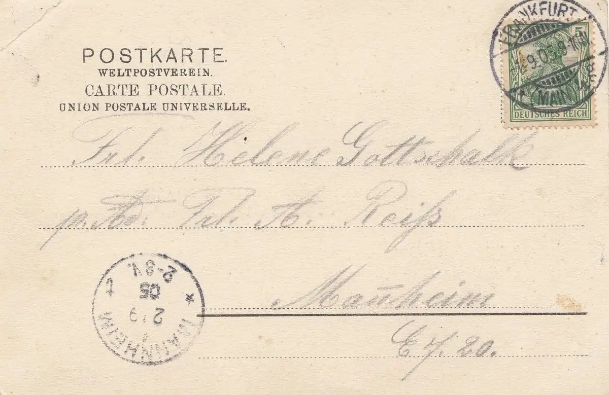 Carte de vue Goethe - Francfort / M 1905 vers Mannheim