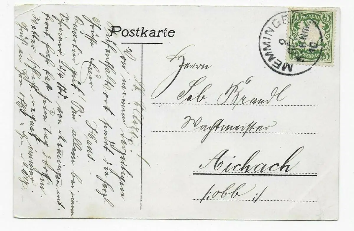 Carte de vue Gruss de Eisenburg, Memmingen d'après Aichach, 1910