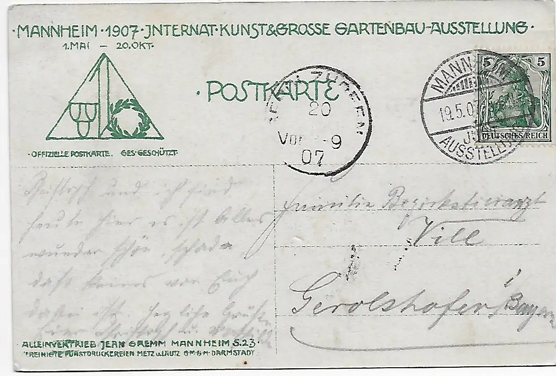 Carte de l'exposition anniversaire de Mannheim, 1907 Art et horticole