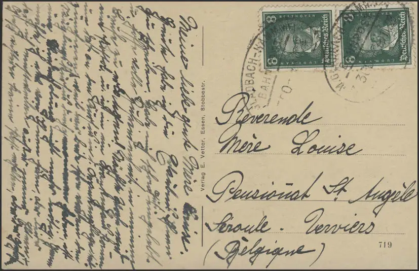 Carte de vue Chapelle des Franciscaines, Poste ferroviaire M.Gladbach-Hamm 1928
