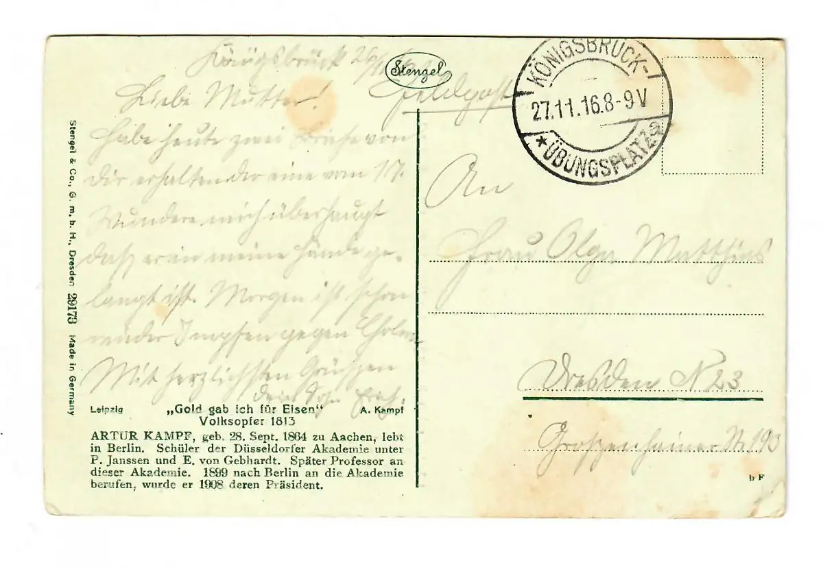 Carte de vue Königsbrück "L'or, je donne pour le fer" 1916