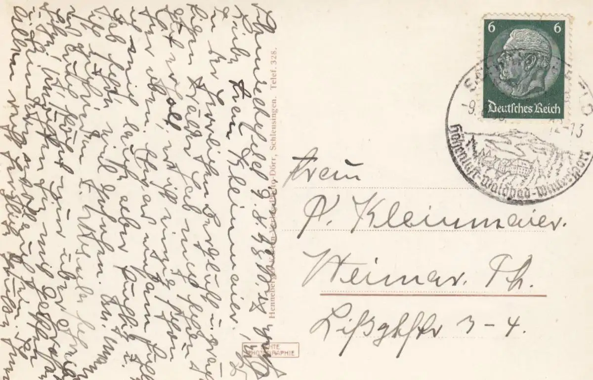 Carte de vue Kurort Forgefeld 1938 d'après Weimar
