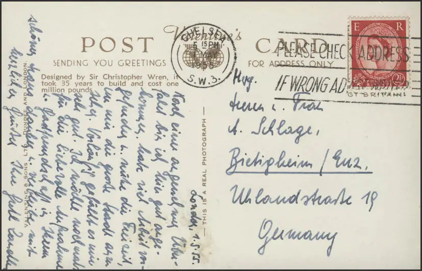 Carte de Londres: Église Saint-Paul, Chelsea 1.5.1955
