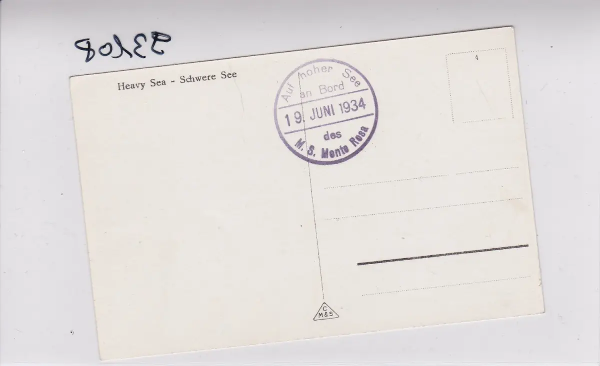 Carte visuelle: Norge: En haute mer à bord du M.S. Monte Rosa, 1934