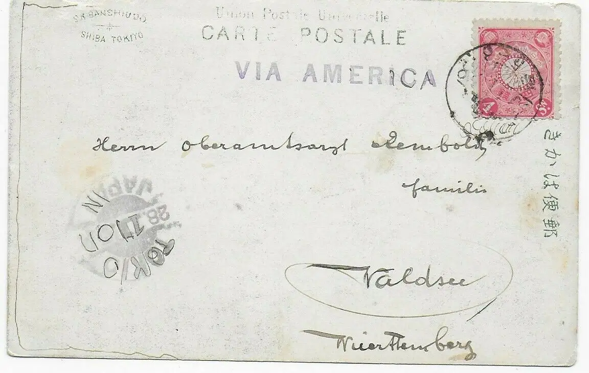 Carte de Tokyo après Bad Waldsee via Amérique, 1910