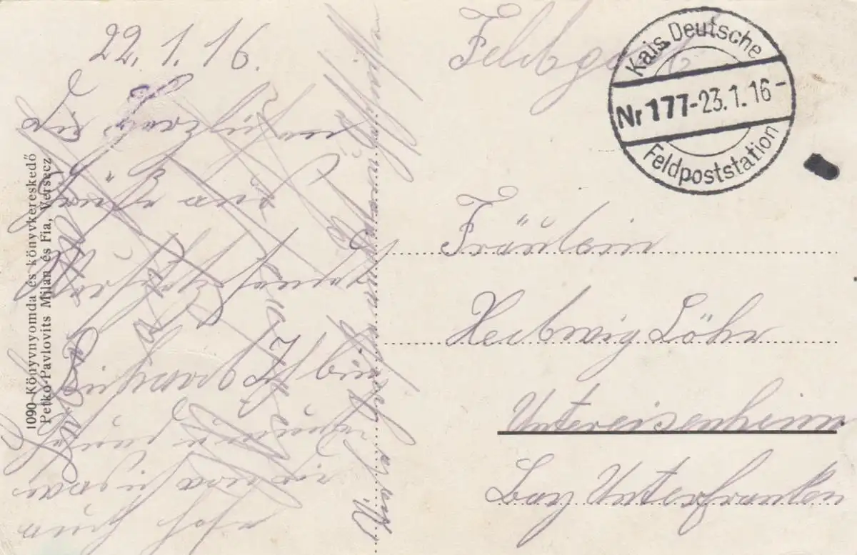 Carte de vue Versecz, Varrom-Rue 1916 vers Unterseisenheim